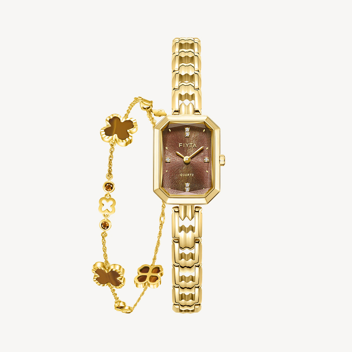Eastern Grace Collection Women's Watch & Tiger’s Eye Clover Bracelet Gift Set