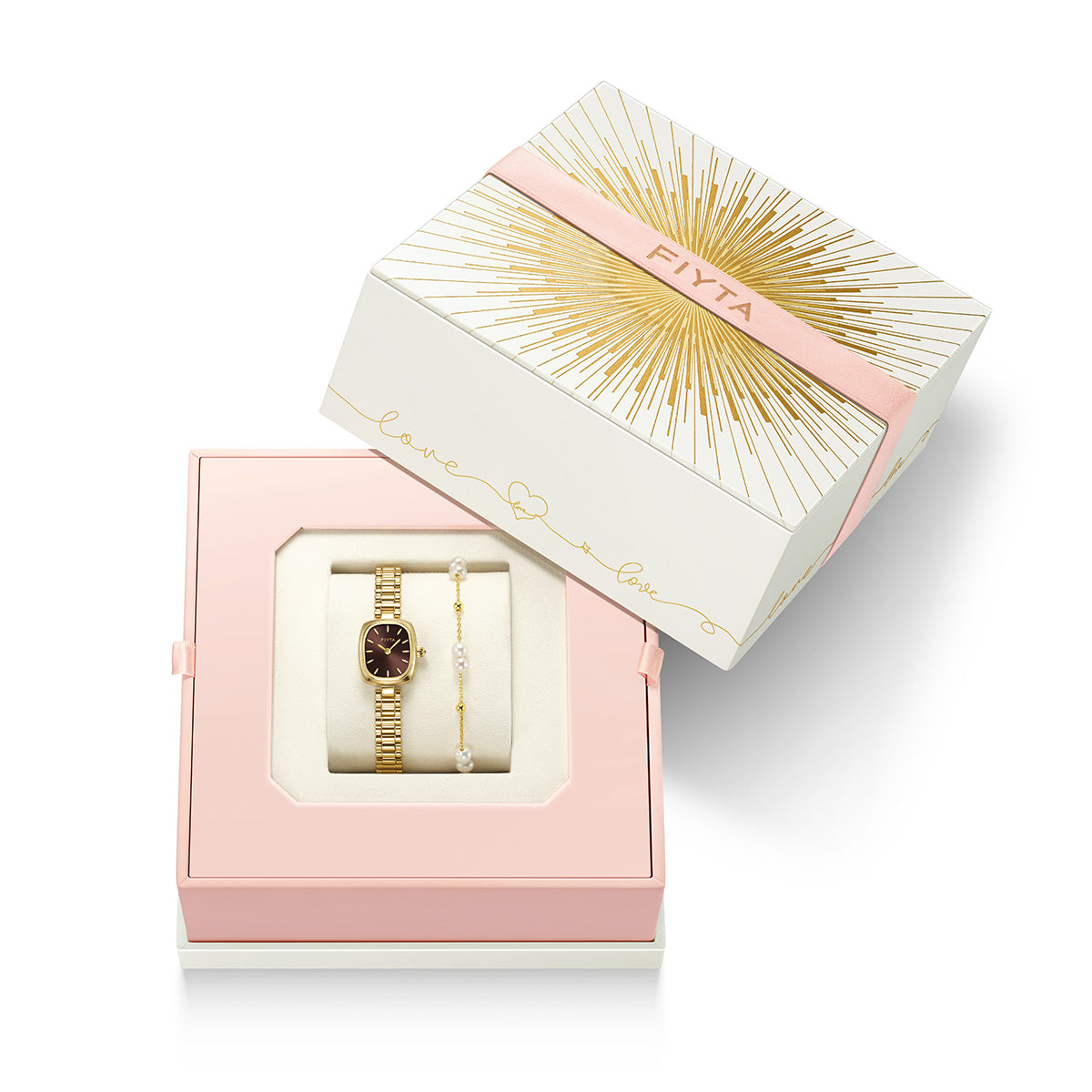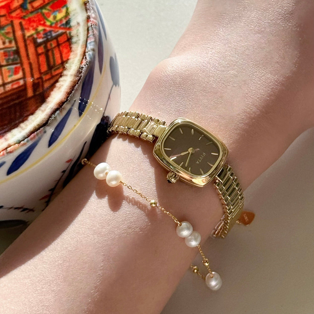Gold Watch & Pearl Bracelet Gift Set